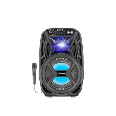 مكبر صوت (سماعة) محمول من ماركة "KRAWN" يتميز بتصميم عصري باللون الأسود. المكبر مصمم بشكل صندوقي وله مقبض لسهولة الحمل.